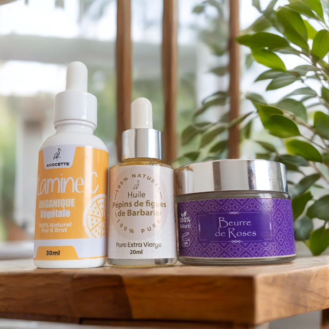 Huile de pépins de figue de barbarie + Vitamine C organique + Beurre de Roses